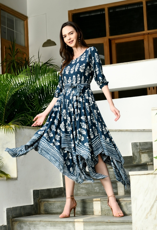 Dropship BLUE HANDKERCHIEF STYLE DRESS
