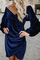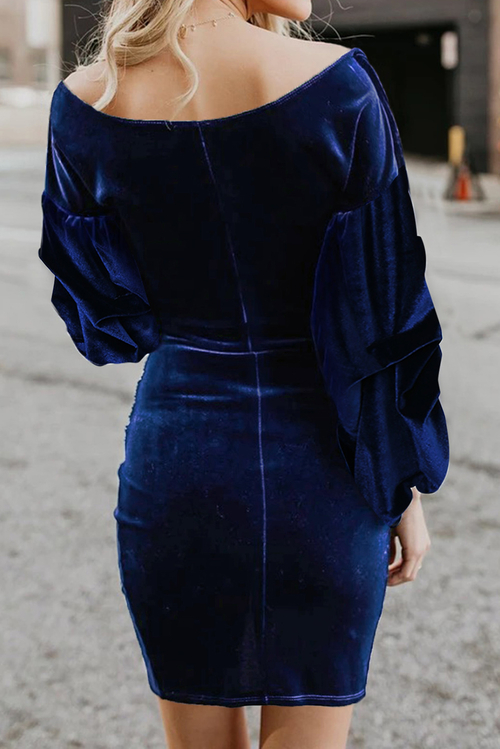Blue Puff Sleeve Off Shoulder Wrap Bodycon Velvet Dress