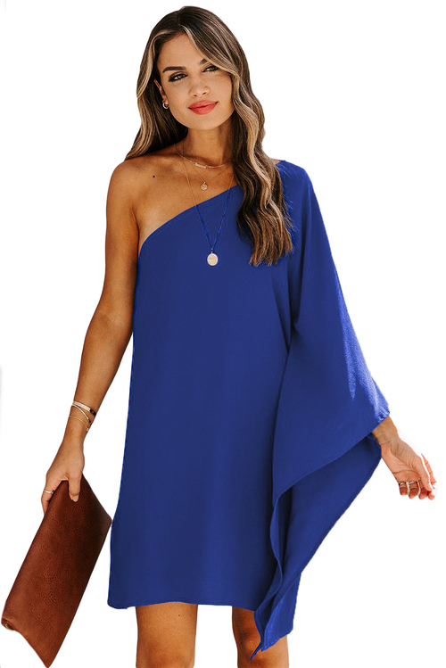 Dropship Blue Side To Side One Shoulder Statement Mini Dress