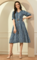 Dropship Blue STRIPE PUFF SLEEVES DRESS (Size S)