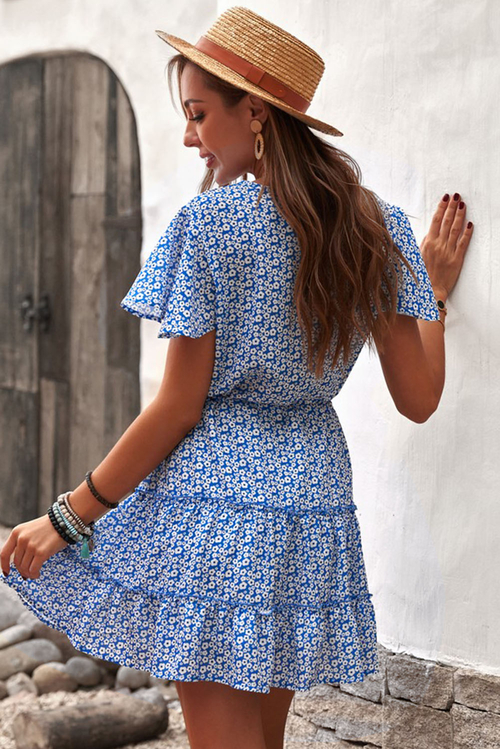 •Flutter sleeve, low-cut v-neck and a bow tie at the waist, this swing short dress is sexy and stylish