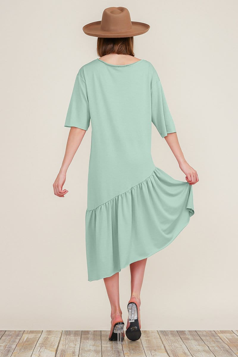 In summary, the Boat Neck Short Sleeve Asymmetric Ruffle Tiered Hem Casual Loose Dress is the perfect blend of style, comfort, and versatility. Whether you're dressing up for a special occasion or keeping it casual, this dress will be your go-to choice for any event.
