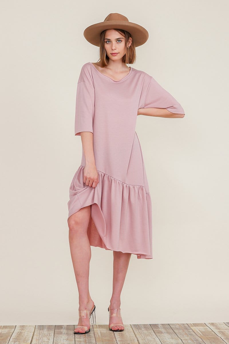 Introducing the Boat Neck Short Sleeve Asymmetric Ruffle Tiered Hem Casual Loose Dress, a must-have addition to your wardrobe. This dress combines comfort and style, making it ideal for a variety of occasions. Crafted from a blend of 87% polyester, 10% rayon, and 3% spandex, it offers a super soft and comfortable fit that you'll love to wear all day long.