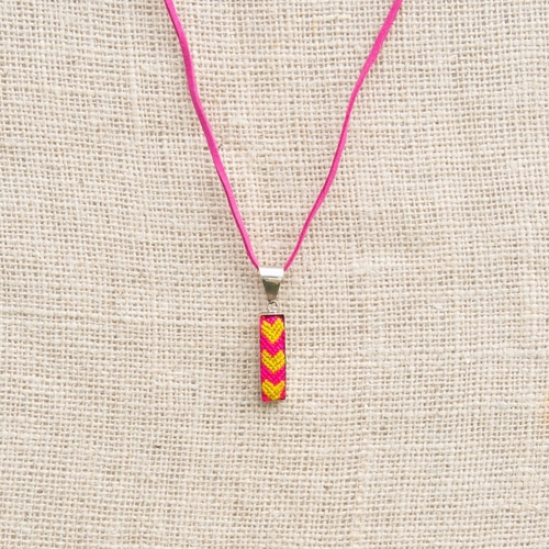 The artisans employ traditional techniques that have been passed down through generations. The waist loom method is an ancient practice used by Mesoamerican cultures, where threads of various fibers are interwoven on a wooden loom. This intricate process requires skill and patience, with the creation of a single square of fabric taking between 6 to 8 hours to complete. The result is a beautiful pendant that is not only a fashion statement but also a testament to the craftsmanship of its maker.