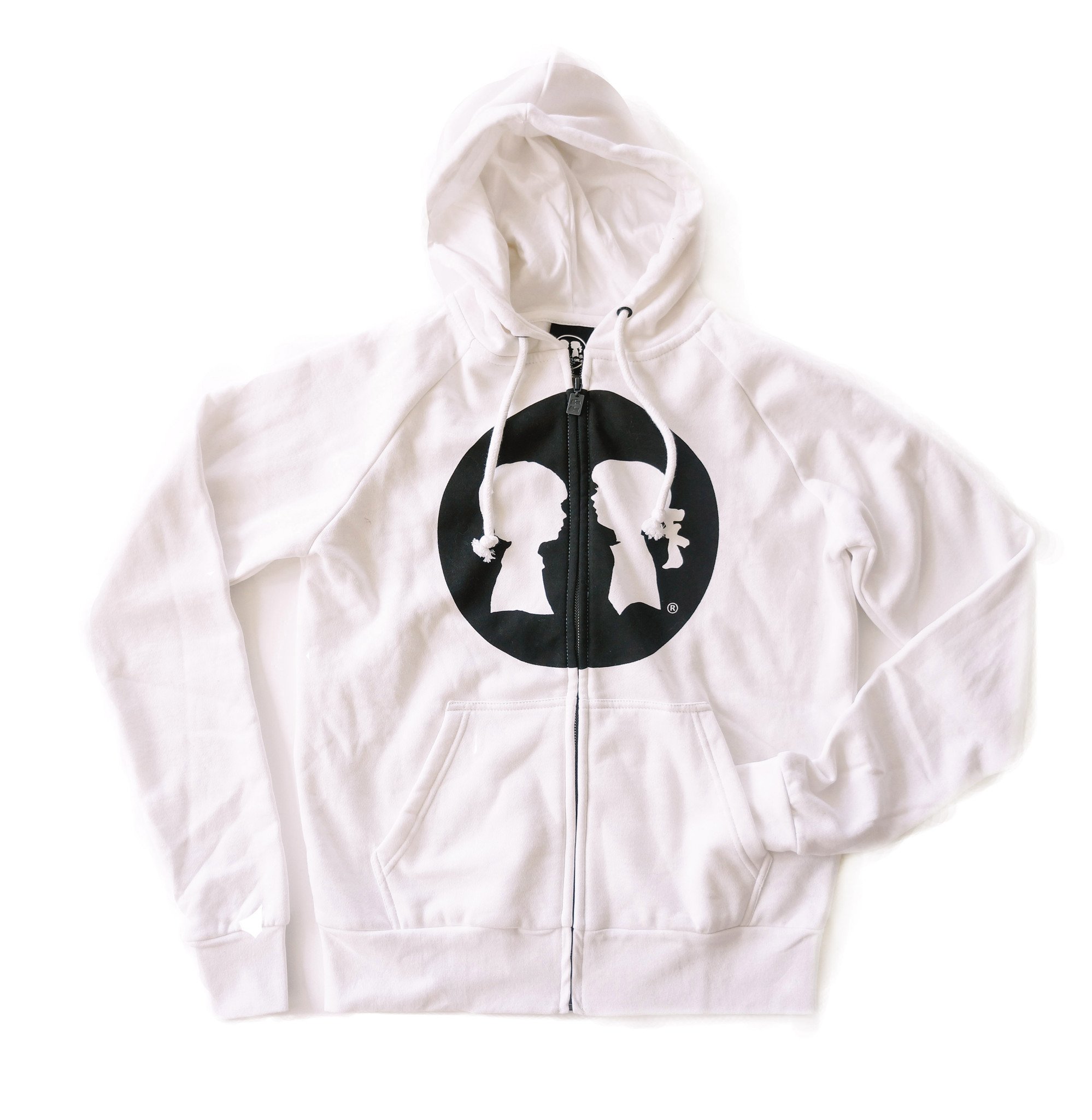 The BOY MEETS GIRL® Full Circle Logo Hoodie is the perfect blend of style and comfort, designed for those who appreciate modern fashion. This hoodie is available in a crisp white color, featuring a bold black logo that makes a statement. Whether you're lounging at home or heading out with friends, this hoodie is a versatile addition to your wardrobe.