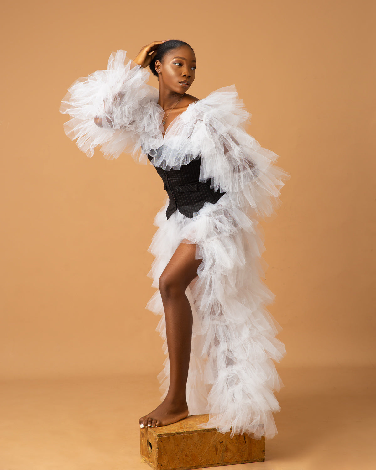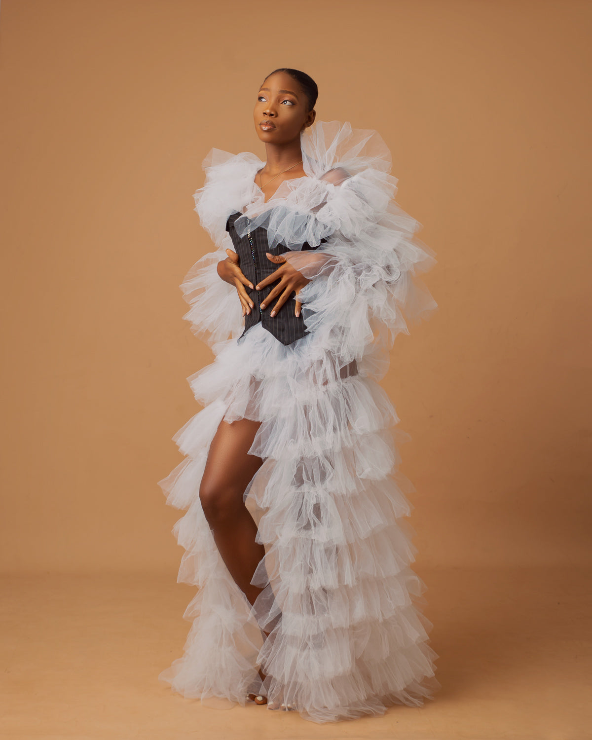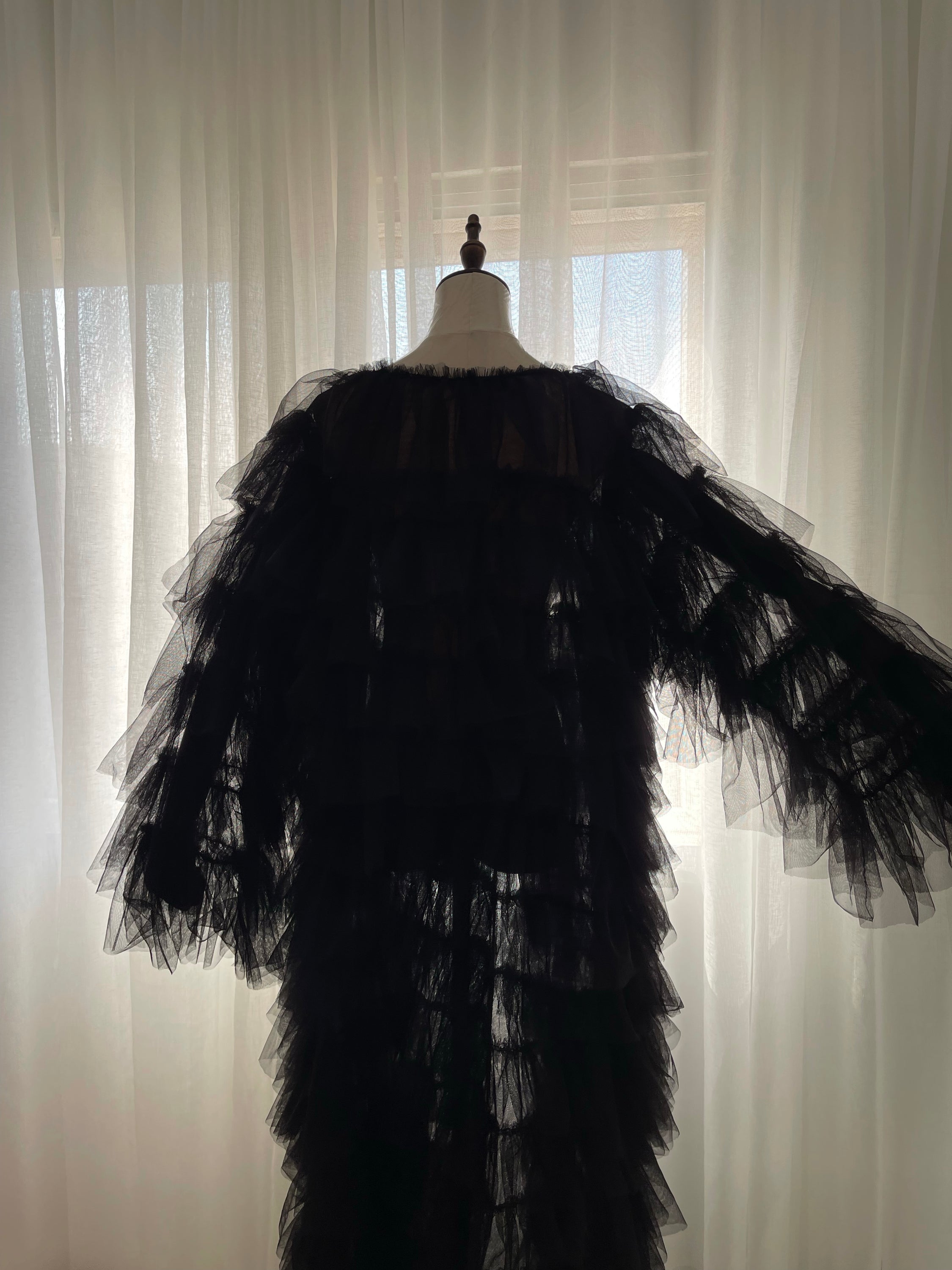 The ruffled tulle design of the Breezy Long Coat adds a touch of elegance and sophistication. The flowing silhouette drapes beautifully over any outfit, making it a perfect layering piece. Whether you're dressing up for a night out or adding flair to your everyday look, this coat is sure to turn heads.