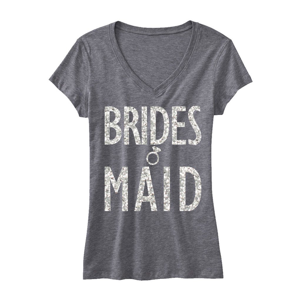 Introducing the stunning BRIDESMAID GLITTER Shirt Gray V-neck, the ultimate choice for bridesmaids looking to add a touch of sparkle to their special day. This shirt features a beautiful glitter print that proudly displays the word 'BRIDESMAID', making it a perfect addition to any bridal party attire. Crafted from 100% ring spun cotton, this shirt is not only stylish but also incredibly soft and lightweight, ensuring comfort throughout the day.