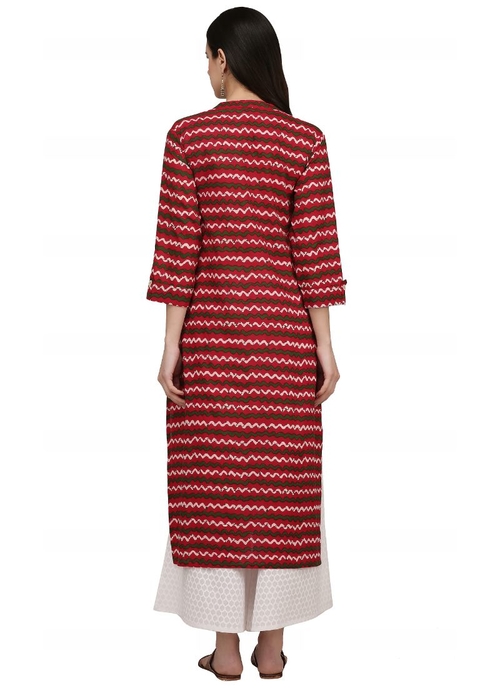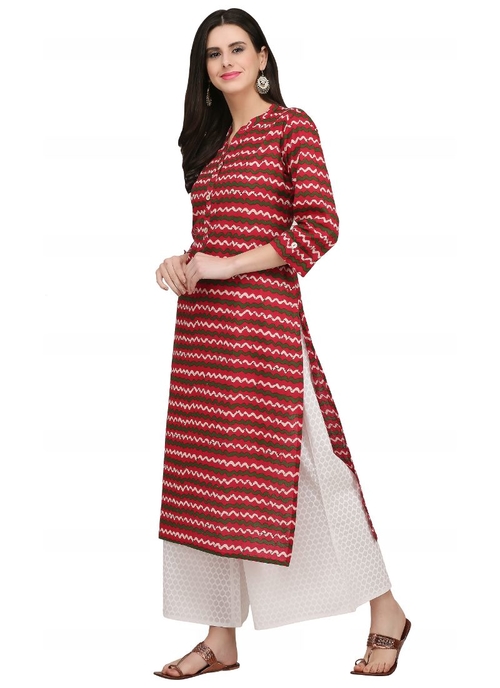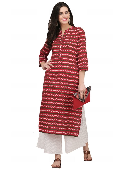 Brown And Multi Color Cotton Kurti,