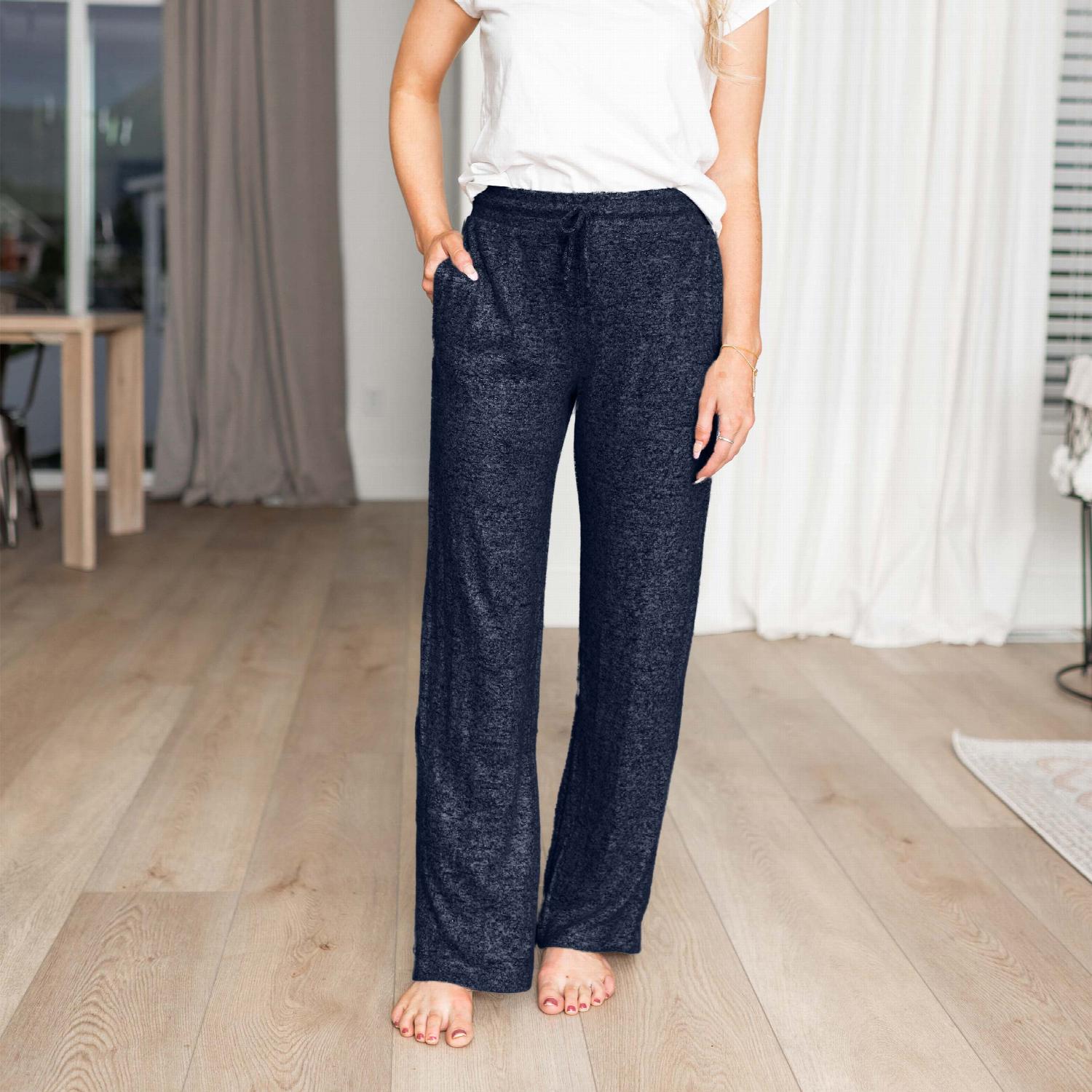 Brushed Hacci Wide Leg Pants in three colors, showcasing a relaxed fit and ribbed waistband with drawstring.