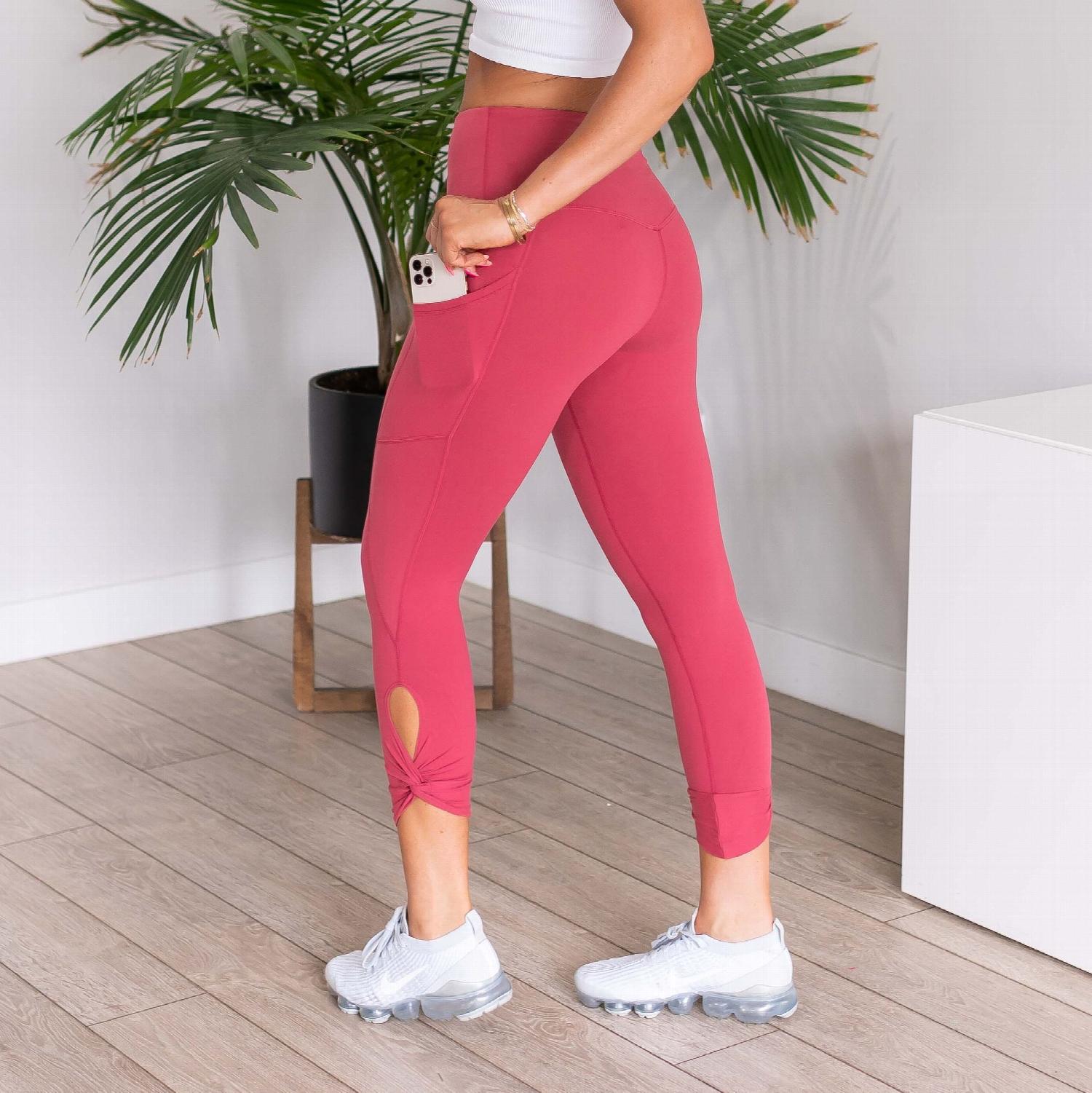 In addition to their stylish appearance, these leggings are equipped with slim pockets on either thigh. These pockets are perfect for holding small accessories such as keys, cards, or your phone, allowing you to keep your essentials close at hand while you work out. No more worrying about where to put your belongings during your yoga session or run!