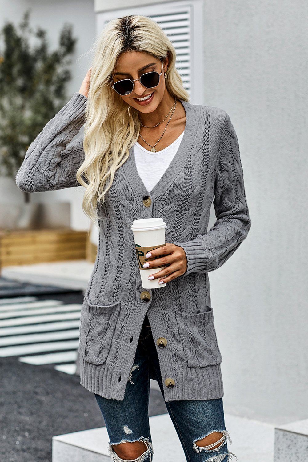 The Button Pocket Knit Cardigan is perfect for layering over any casual pants or skirts. Pair it with your favorite jeans for a laid-back look or wear it over a dress for a more polished outfit. Its versatility makes it an essential piece for your fall and winter wardrobe.