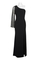 Cachet One Shoulder Embellished Sleeve Bodycon Slit Front Zipper Back Crepe Dress; Fabric: Crepe (94% Polyester 6% Spandex) Lining (100% Polyester); Fabric Content: LINED