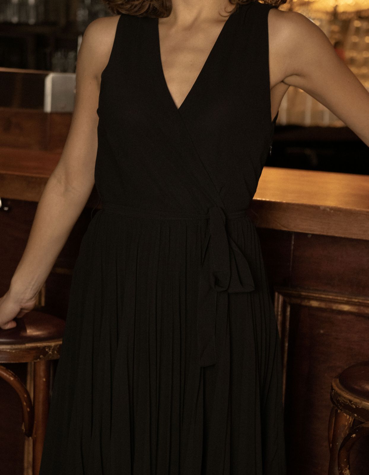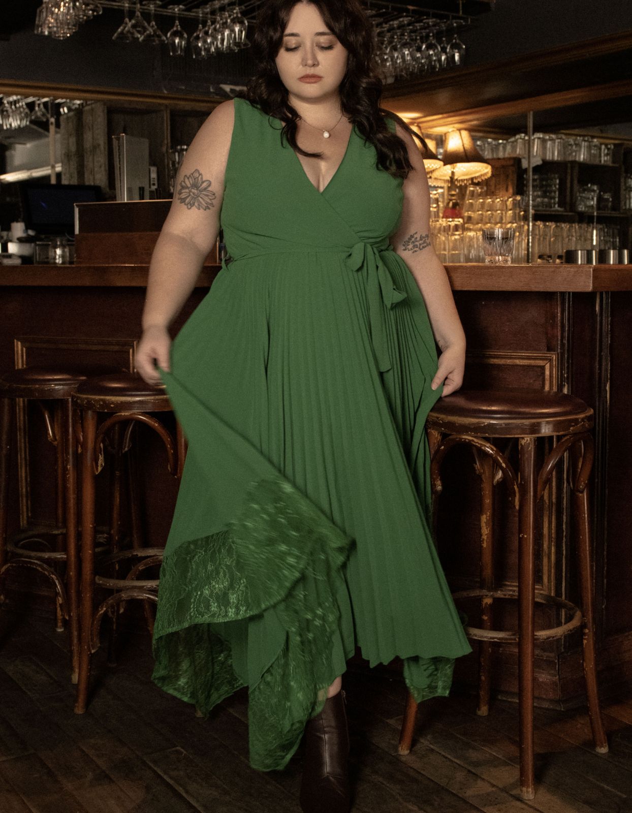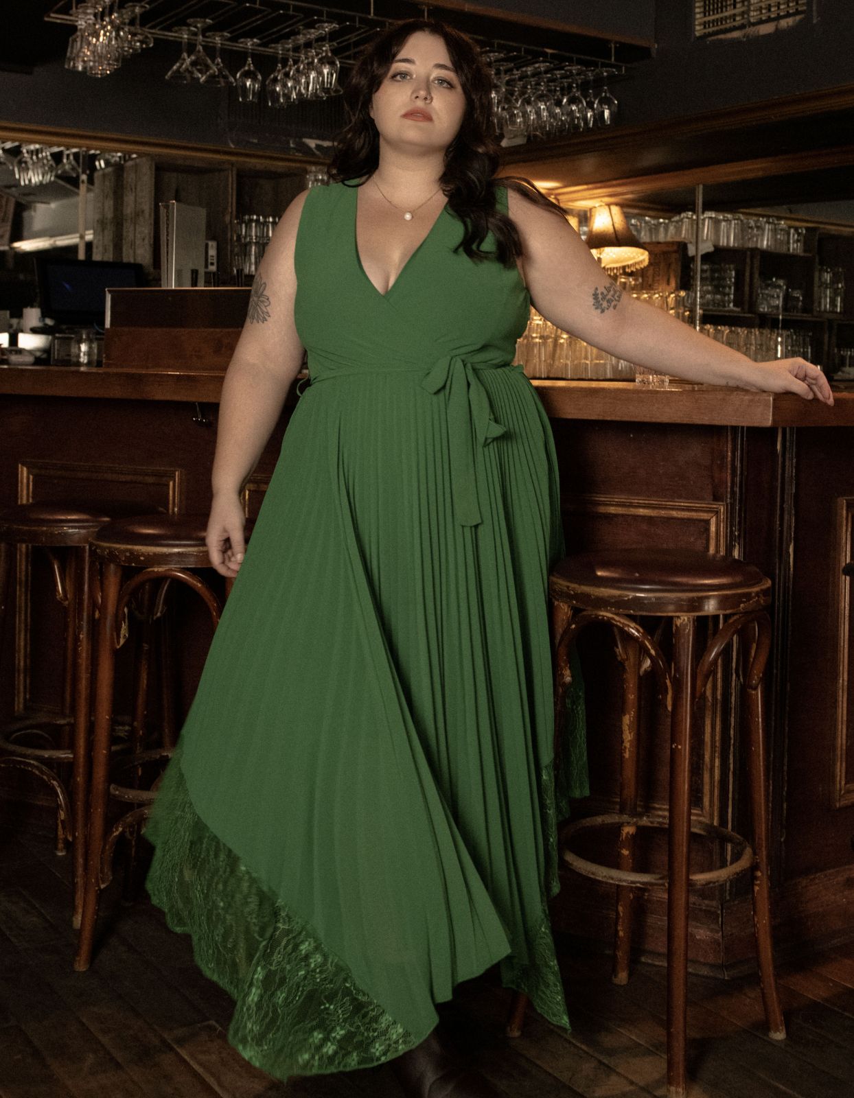 The Callie Maxi Dress is a stunning addition to any wardrobe, designed to make you feel elegant and confident for any occasion. This dress features a beautiful crossover top that enhances your silhouette, while the pleated skirt adds a touch of sophistication. The lace trim detail along the asymmetrical hemline creates a waterfall effect that is both eye-catching and stylish.