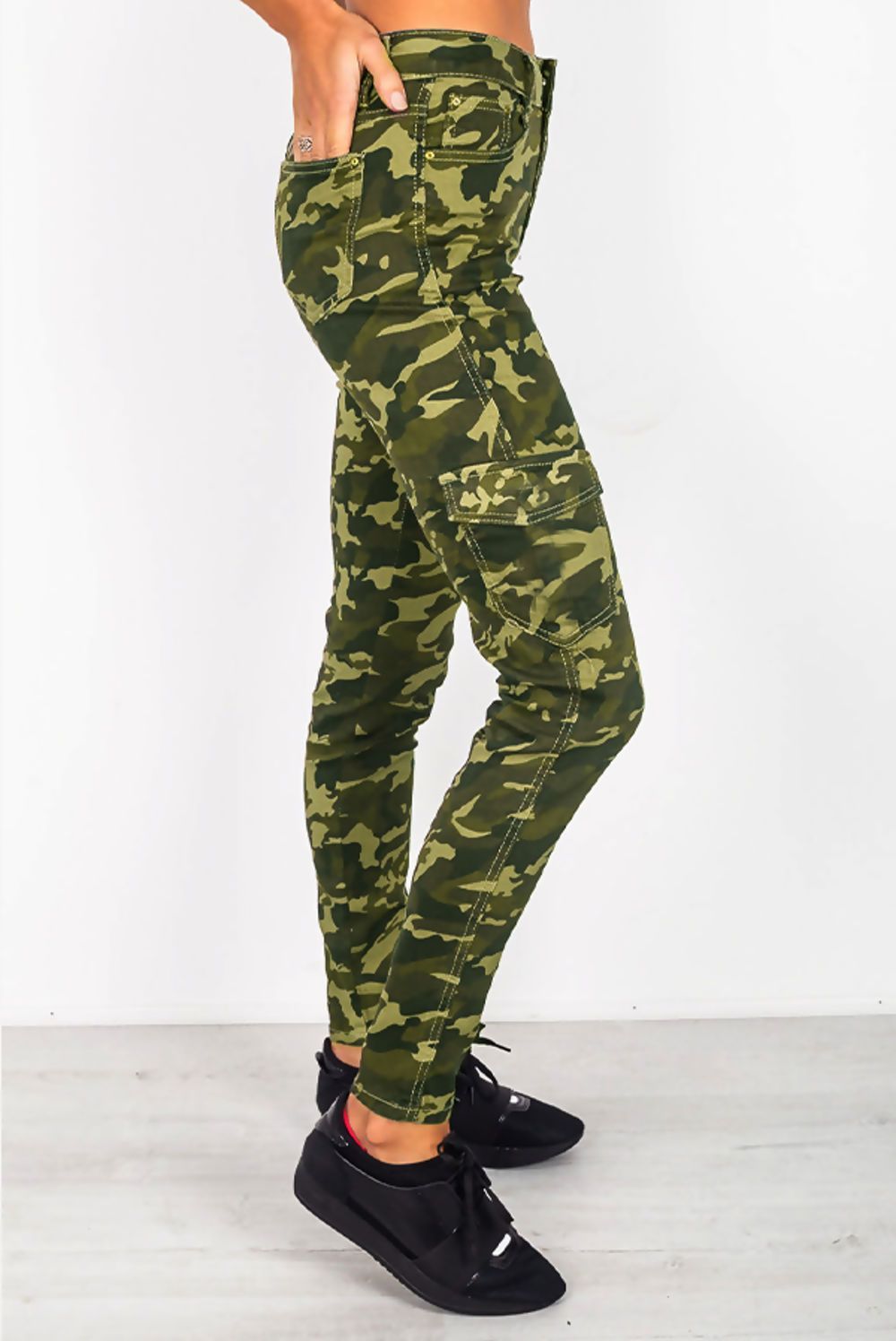 The Camo Cargo Styled Skinny Fit Jeans are a versatile fashion staple that can be dressed up or down. Pair them with a casual t-shirt and sneakers for a laid-back look, or dress them up with a stylish blouse and heels for a night out. The possibilities are endless, making these jeans a must-have for any fashion-forward individual.