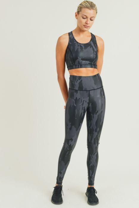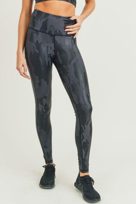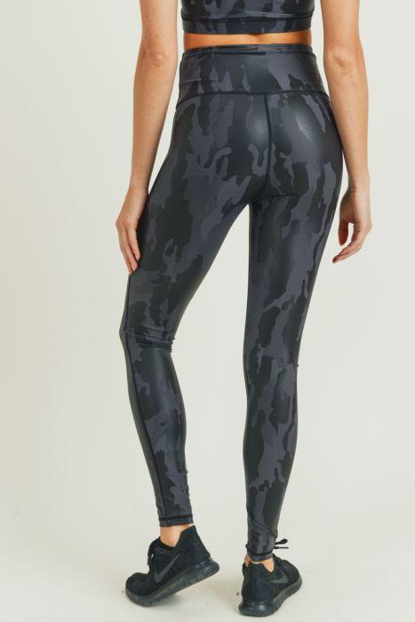 Introducing our Camo Foil Highwaist Leggings, a perfect blend of style and functionality. Crafted with a unique camo print in glistening foil, these leggings are designed to make a statement while providing the comfort and support you need during your workouts or daily activities. The high-waist band not only enhances your silhouette but also offers excellent tummy control, making you feel confident and secure.