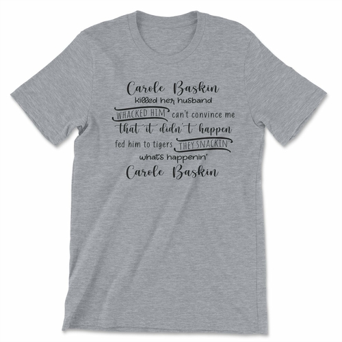 This t-shirt is designed with a unisex fit, making it suitable for everyone. Whether you're shopping for yourself or looking for a gift for a friend, the Carole Baskin Tiger King Tee is versatile enough to be worn by anyone. Available in various sizes, you can find the perfect fit for any body type.