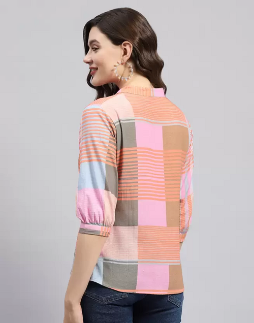 Casual Regular Sleeves Checkered Women Multicolor Top (Size L)