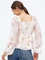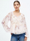 Casual Regular Sleeves Floral Print Women Cream Top (Size M)