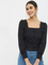 Dropship Casual Regular Sleeves Printed Women Dark Blue Top (Size M)