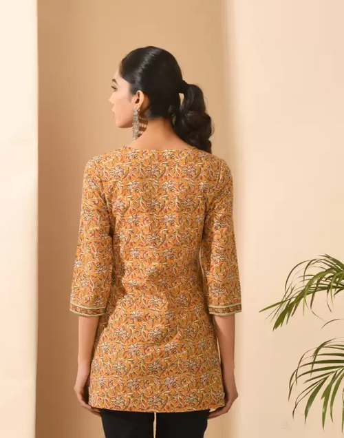 Casual Regular Sleeves Printed Women Mustard Top (Size M)