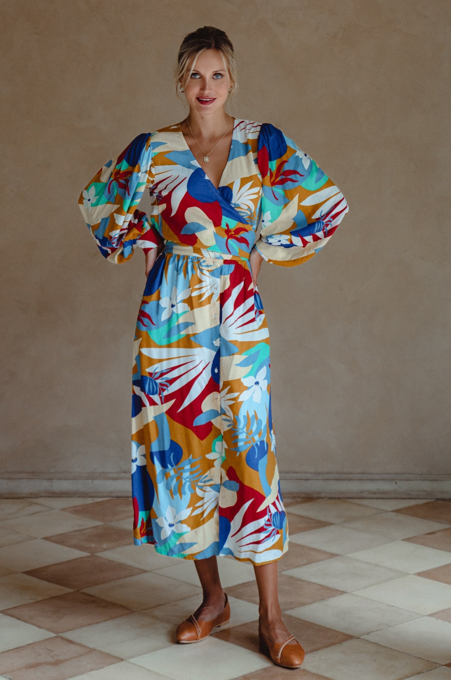 To complete your look, pair the Celeste dress with pointy toe leather flats for a relaxed daytime outfit. For a more elevated style, opt for heels that will enhance your silhouette and add a touch of glamour for a night out. The versatility of this dress allows you to mix and match with various accessories to create your unique style.