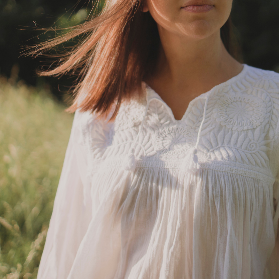 Made from 100% cotton, the Chaya Blouse is soft against the skin and breathable, making it perfect for warm weather or layering in cooler months. To maintain its beauty, it is recommended to machine wash the blouse in cold water. This easy care feature ensures that you can enjoy your blouse without the hassle of complicated cleaning instructions.