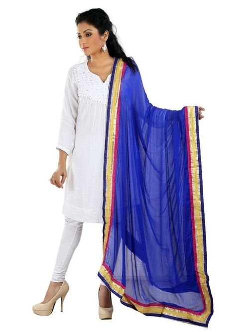Gorgeoue Dupatta with work made in Chiffon material. This will be your go-to one whenever you need one. Color : Blue, Multi Breadth : 37 Length : 88 Material : Chiffon