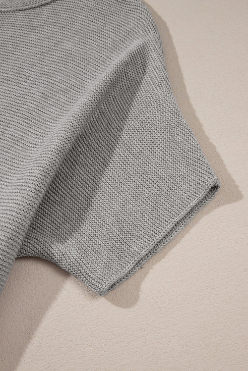 Available in sizes S, M, L, and XL, the Coffee High Neck Short Bat Sleeve Sweater caters to a wide range of body types. The size chart provides detailed measurements for bust, hem width, sleeve length, and overall length, ensuring you find the perfect fit. The high elasticity of the fabric allows for a comfortable fit that moves with you, making it suitable for all-day wear.