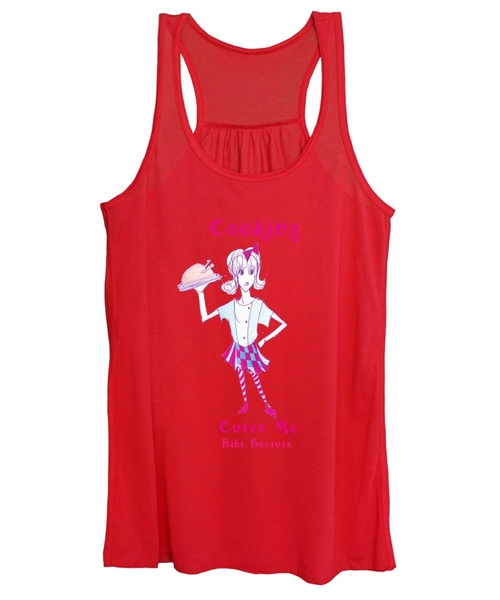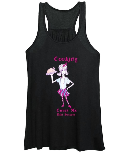 The Cooking Cures Me Bibi women's tank top features a stylish design that is both trendy and timeless. The tank top is perfect for layering or wearing on its own, making it a versatile piece for any season. The unique print adds a fun and playful touch, allowing you to express your personality while staying comfortable. Whether you're dressing up for a night out or keeping it casual for a day at the park, this tank top is sure to make a statement.