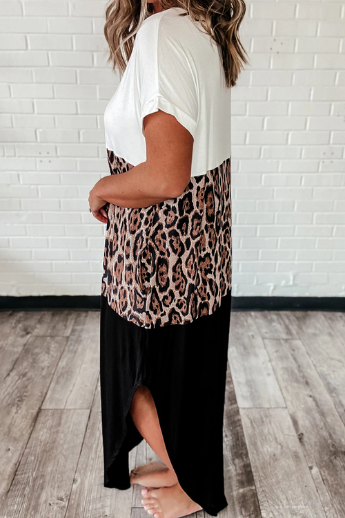 •Casual v neck, short sleeve t-shirt design in maxi-length silhouette