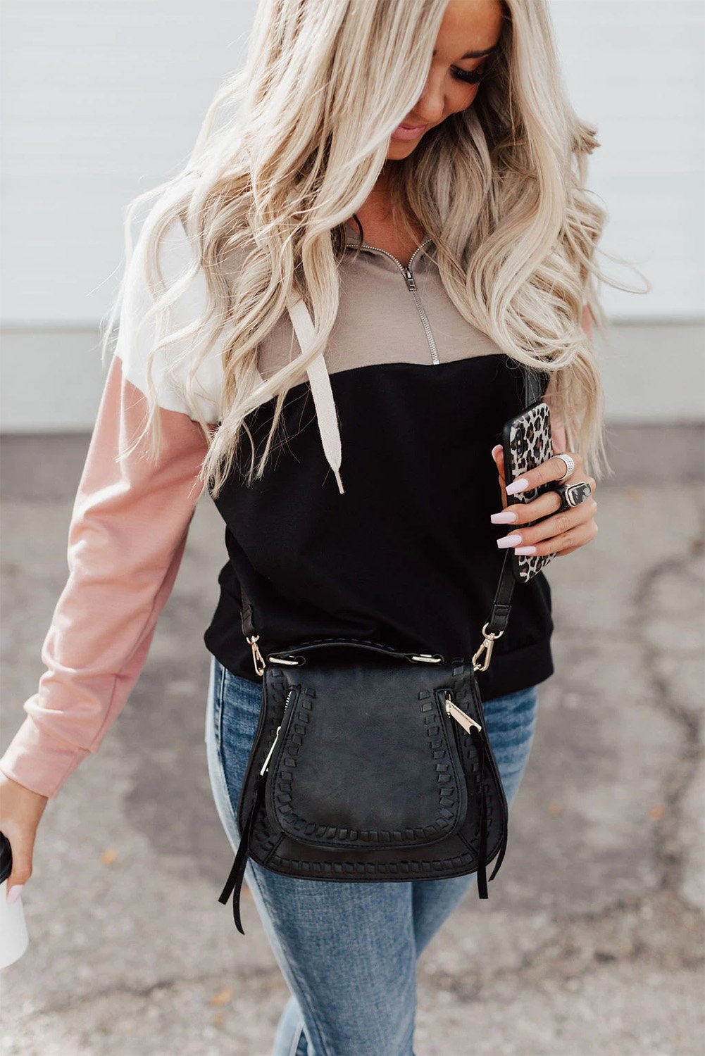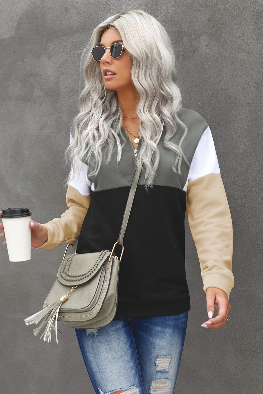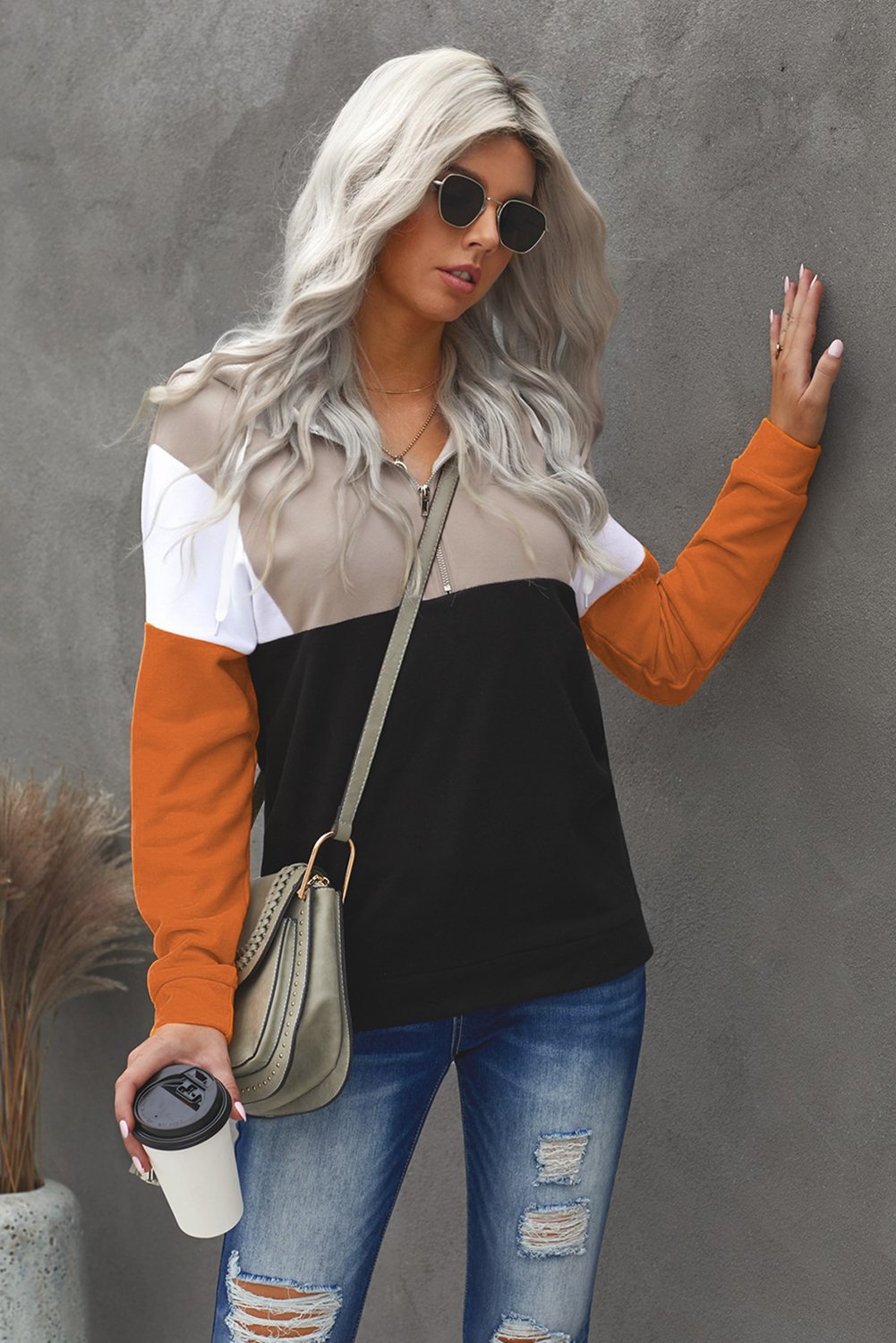 The Colorblock Quarter Zip Pullover Hoodie is incredibly versatile, making it easy to style with your favorite bottoms. Pair it with jeans for a laid-back look or wear it with leggings for a more relaxed outfit. This hoodie is perfect for any occasion, whether you're heading to a coffee shop or enjoying a casual day out with friends.