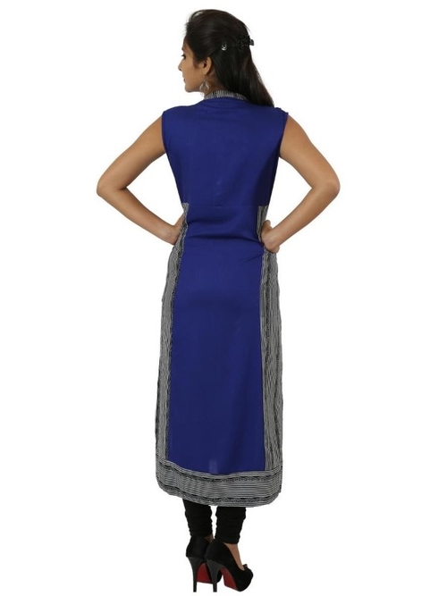 3/4 Sleeve, Standing Collar hand work on yoke, Interlocking-same thread, Bottom Fold Single Stitching.