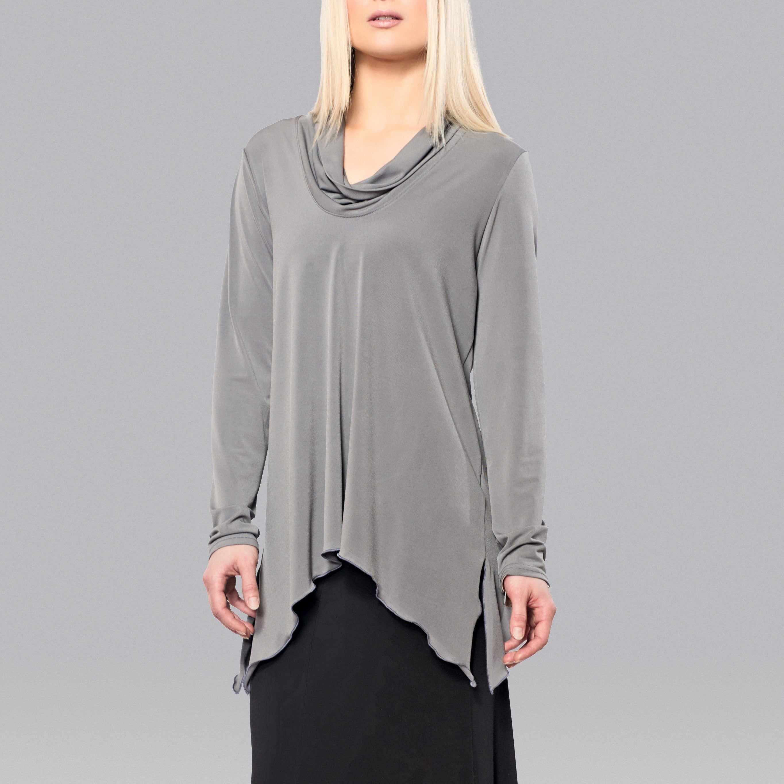 The Cowl Neck Top features a beautifully designed luxe rib-knit collar that adds a touch of elegance to your outfit. The relaxed cocoon shape allows for a flattering silhouette that drapes effortlessly over your body, making it suitable for various body types. The split-slits at the sides enhance the overall design, providing a roomier fit that ensures you can move freely and comfortably throughout your day.