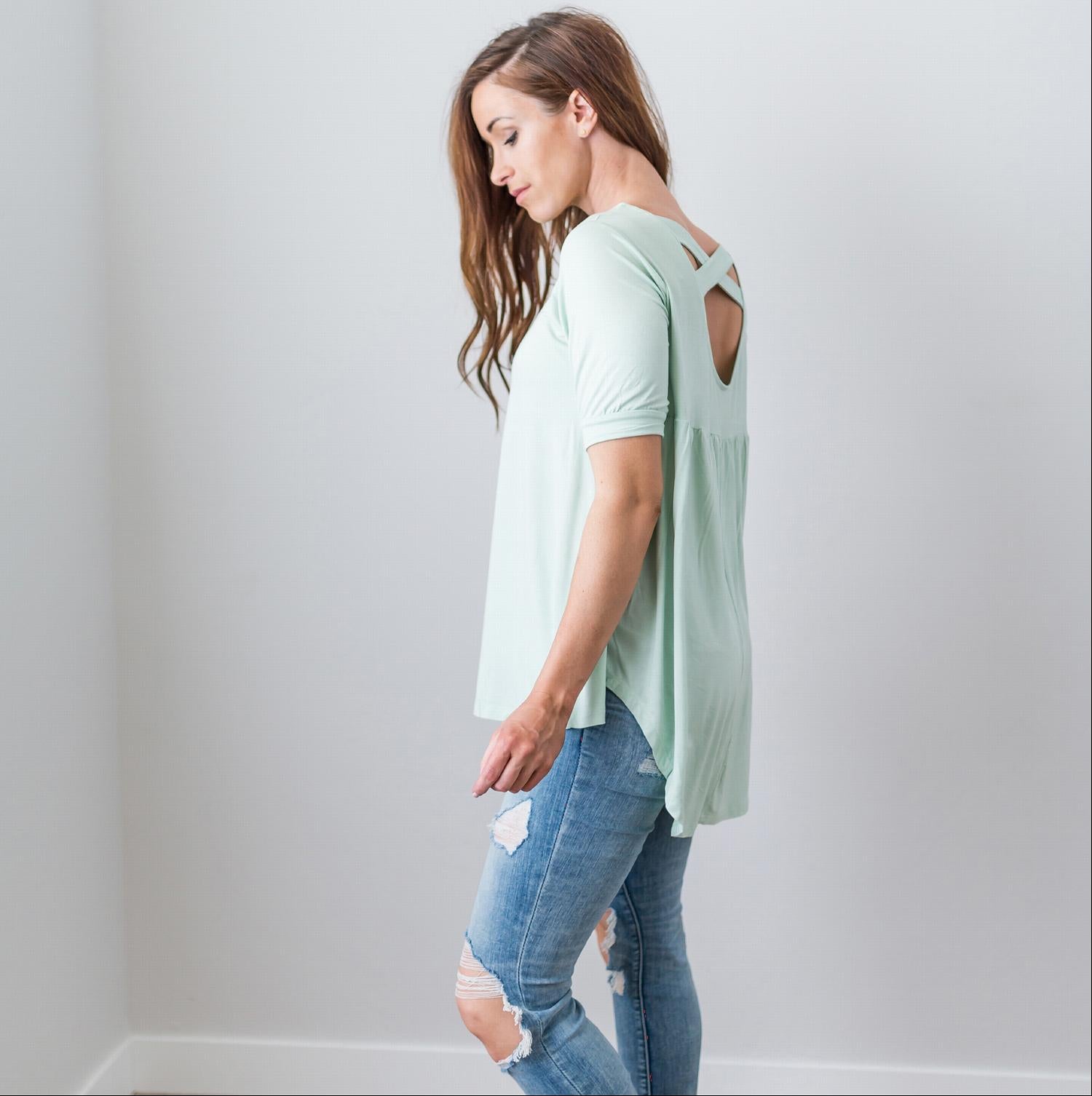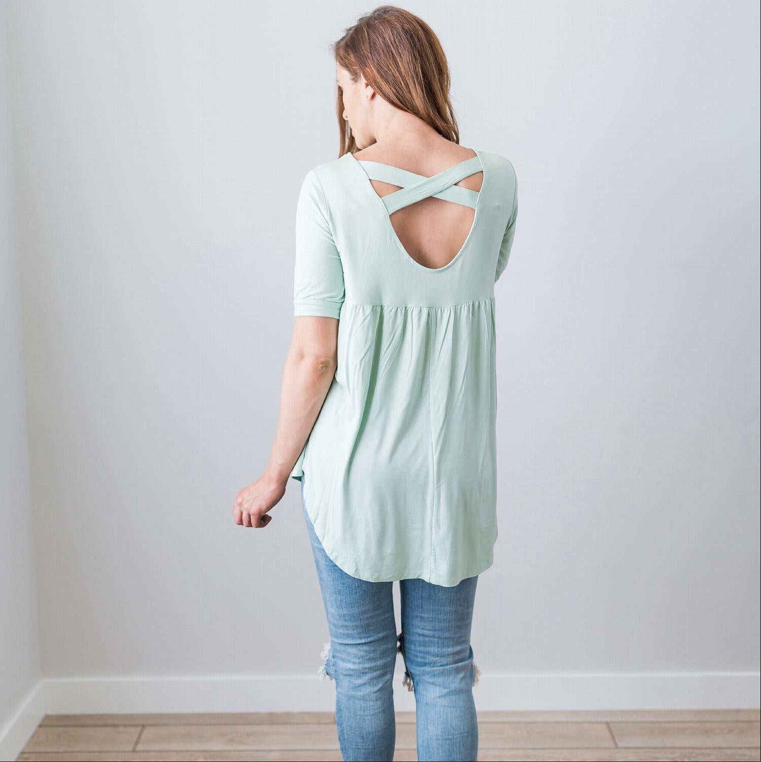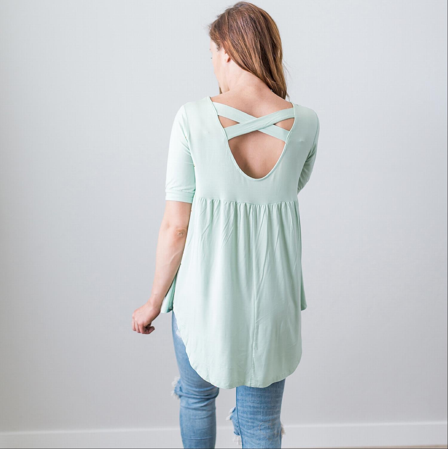 Upgrade your wardrobe with the Criss Cross Back Hi-Low Scoop Hem Top today and experience the perfect blend of style and comfort. This tunic is sure to become a staple in your spring and summer outfits, providing endless styling possibilities.