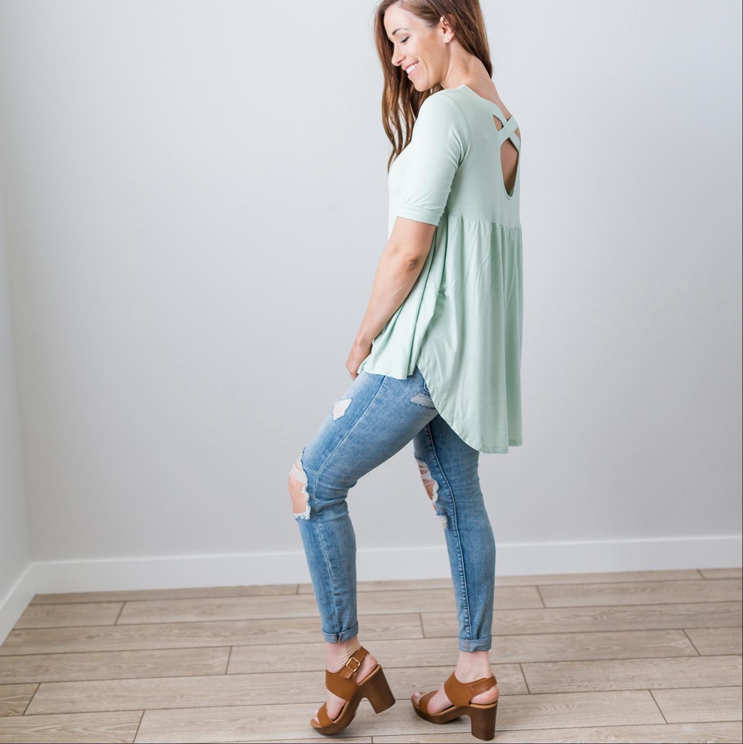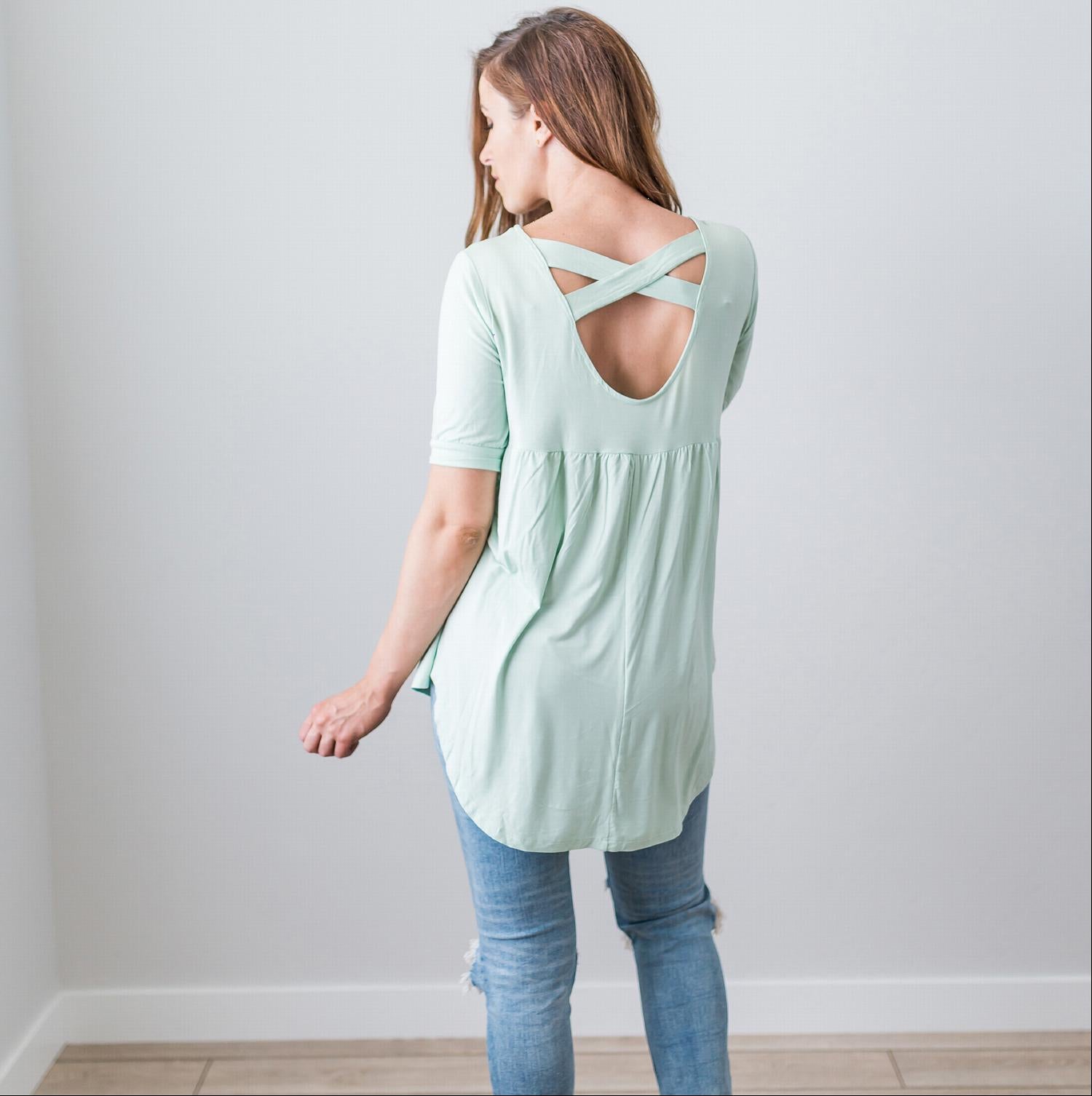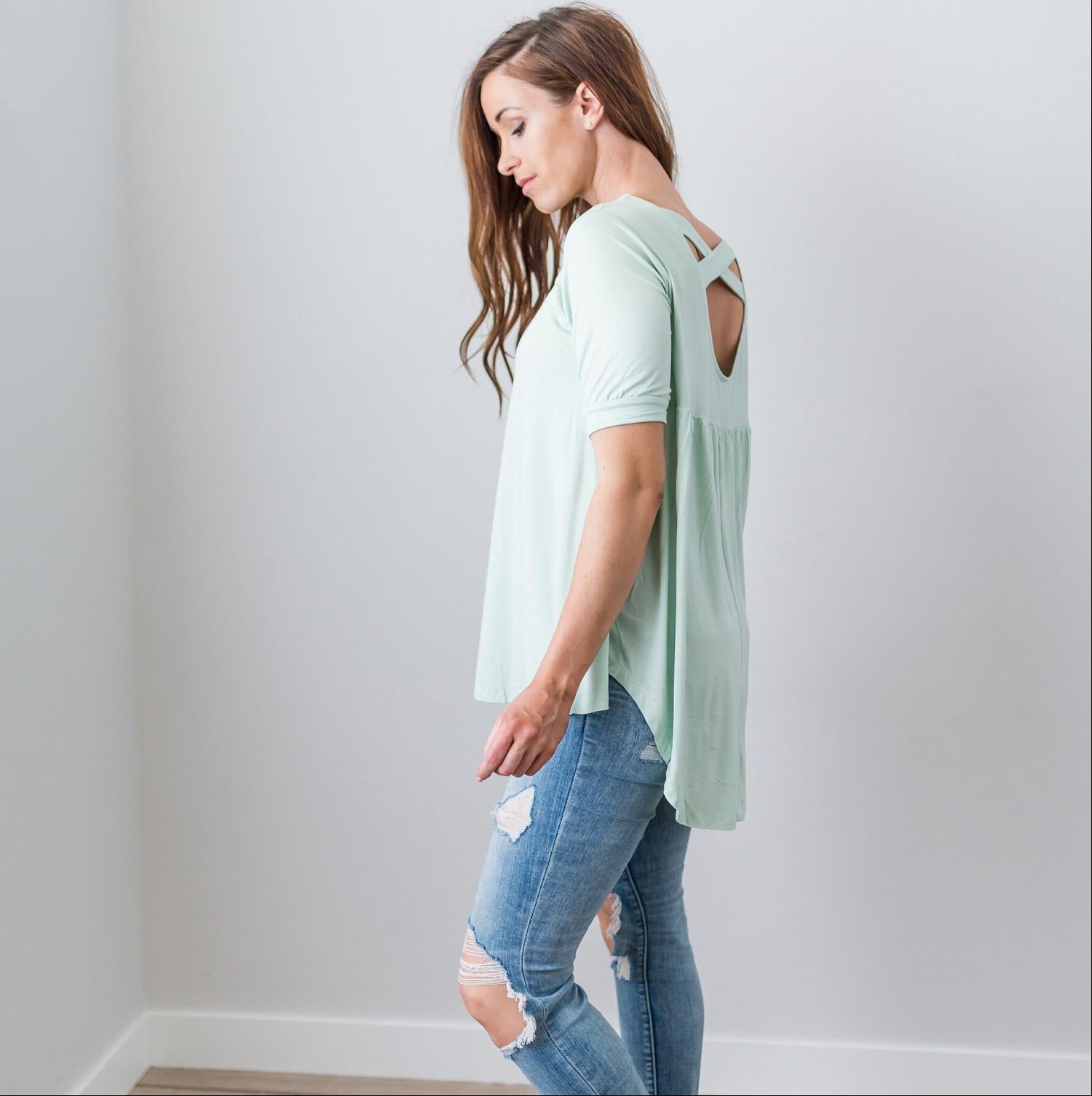 Upgrade your wardrobe with the Criss Cross Back Hi-Low Scoop Hem Top today and experience the perfect blend of style and comfort. This tunic is sure to become a staple in your spring and summer outfits, providing endless styling possibilities.