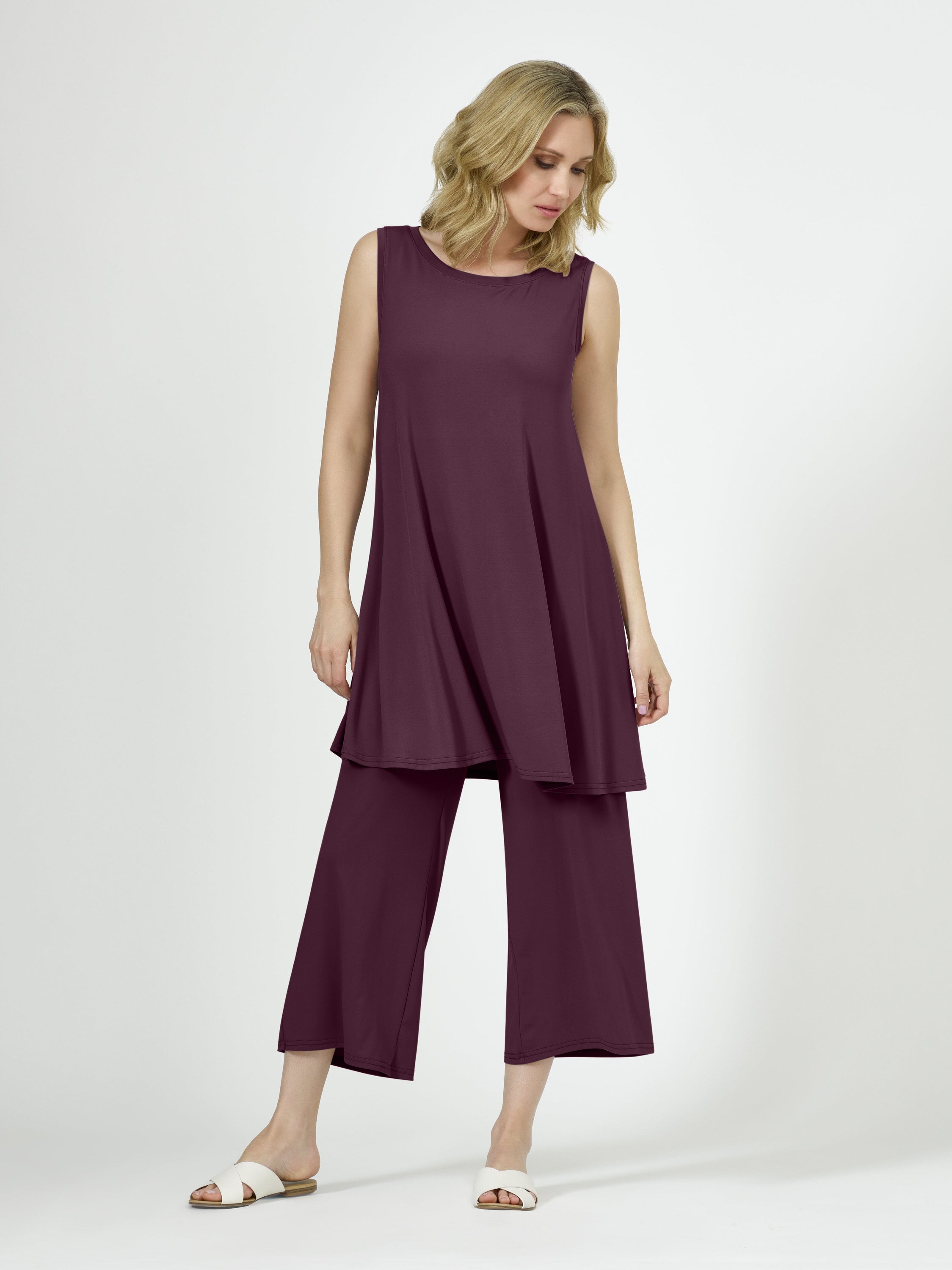 Our Crop Wide Leg Pant features a pull-on style with an elastic waist, ensuring a smooth and comfortable fit that you'll love. Made from a luxurious signature stretch knit fabric, these pants are so comfortable that you can even sleep in them! The blend of 94% polyester and 6% spandex provides just the right amount of stretch, allowing for ease of movement while maintaining a polished look.