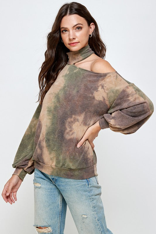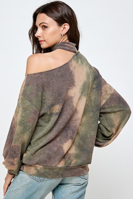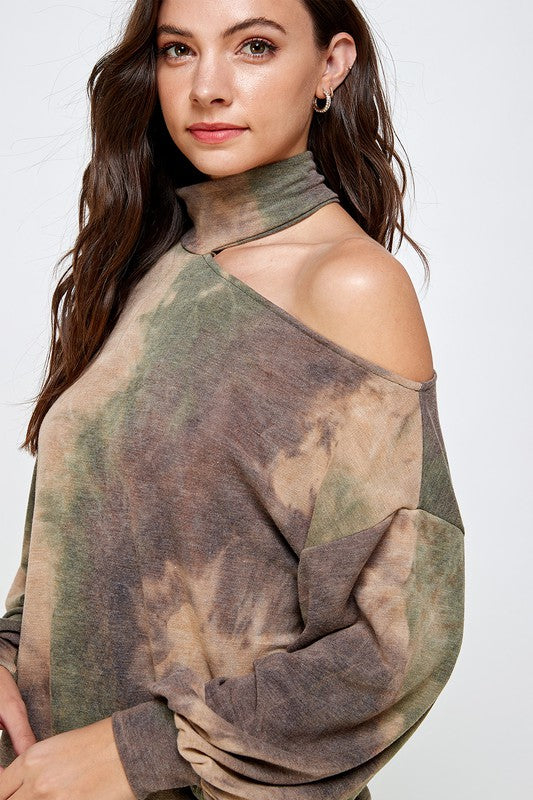 The CUT OUT TIE DYE TOP features a fashionable cut-out at the shoulder, giving it a modern twist that is both chic and playful. This design element not only enhances your silhouette but also allows for easy movement, making it ideal for both casual outings and more dressed-up occasions.