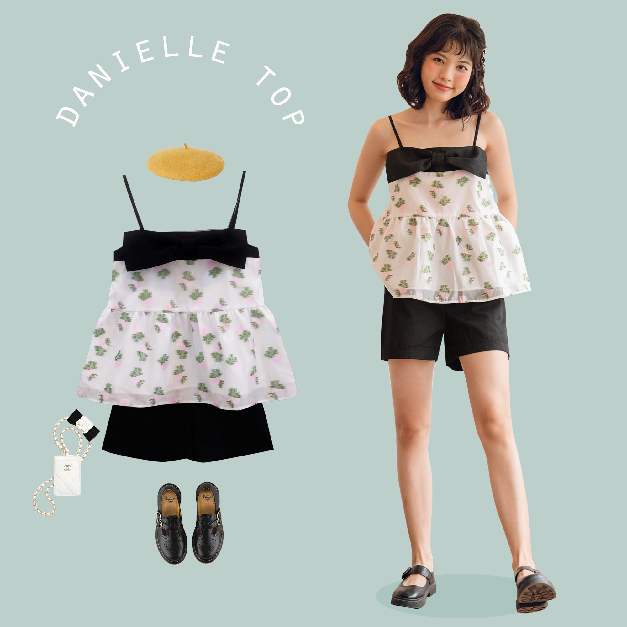 The Danielle Top is designed in Asian sizes, so it is essential to refer to the Size Guide to select the perfect fit for you. The length of the top is 50cm, making it versatile enough to pair with various bottoms, from skirts to tailored trousers. Please note that size L is available for pre-order only, which may require an additional 10 days for processing.