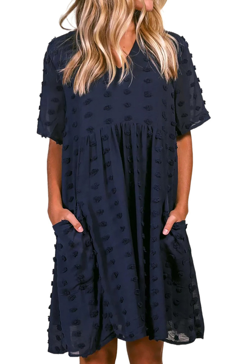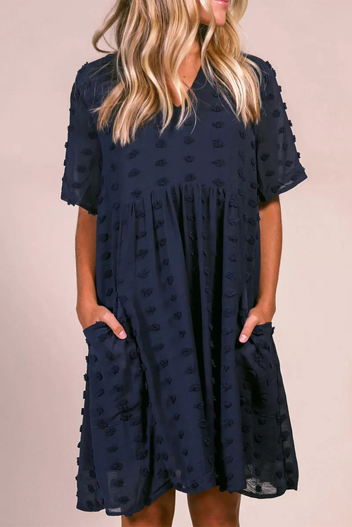 •The v-neck swing short dress with little pompoms on it is lovely