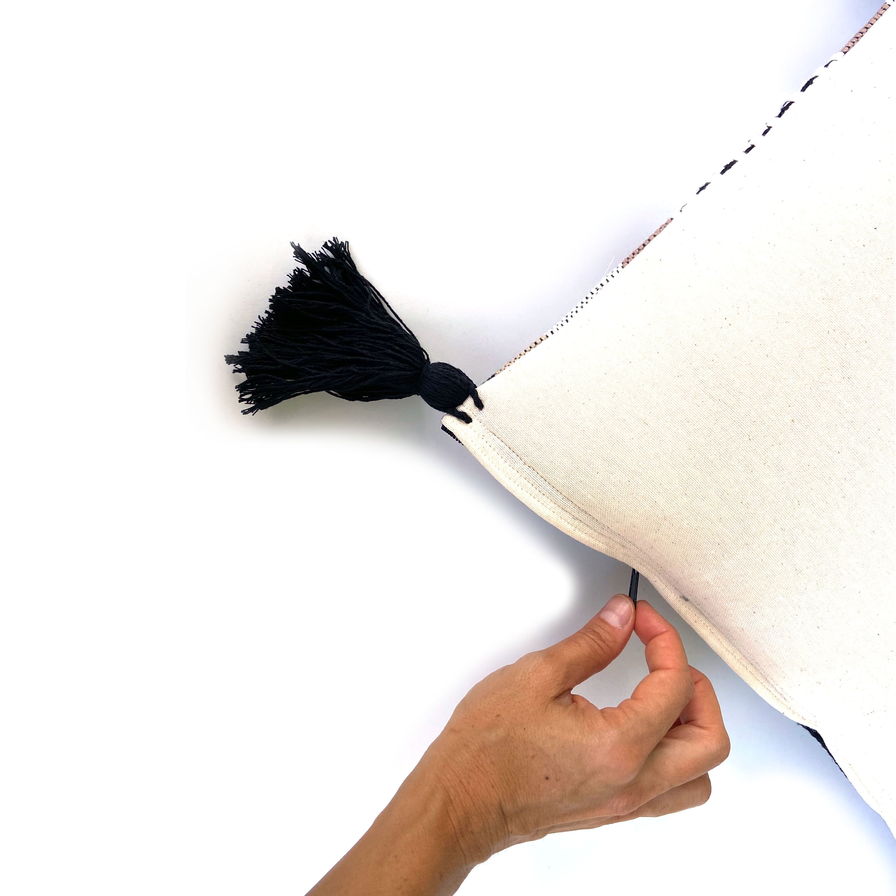This pillow cover is designed with practicality in mind. The zipper closure on one end allows for easy insertion and removal of the pillow insert, making it convenient for cleaning and maintenance. Additionally, the four decorative tassels on each corner add a playful touch, enhancing the overall aesthetic of the pillow cover.
