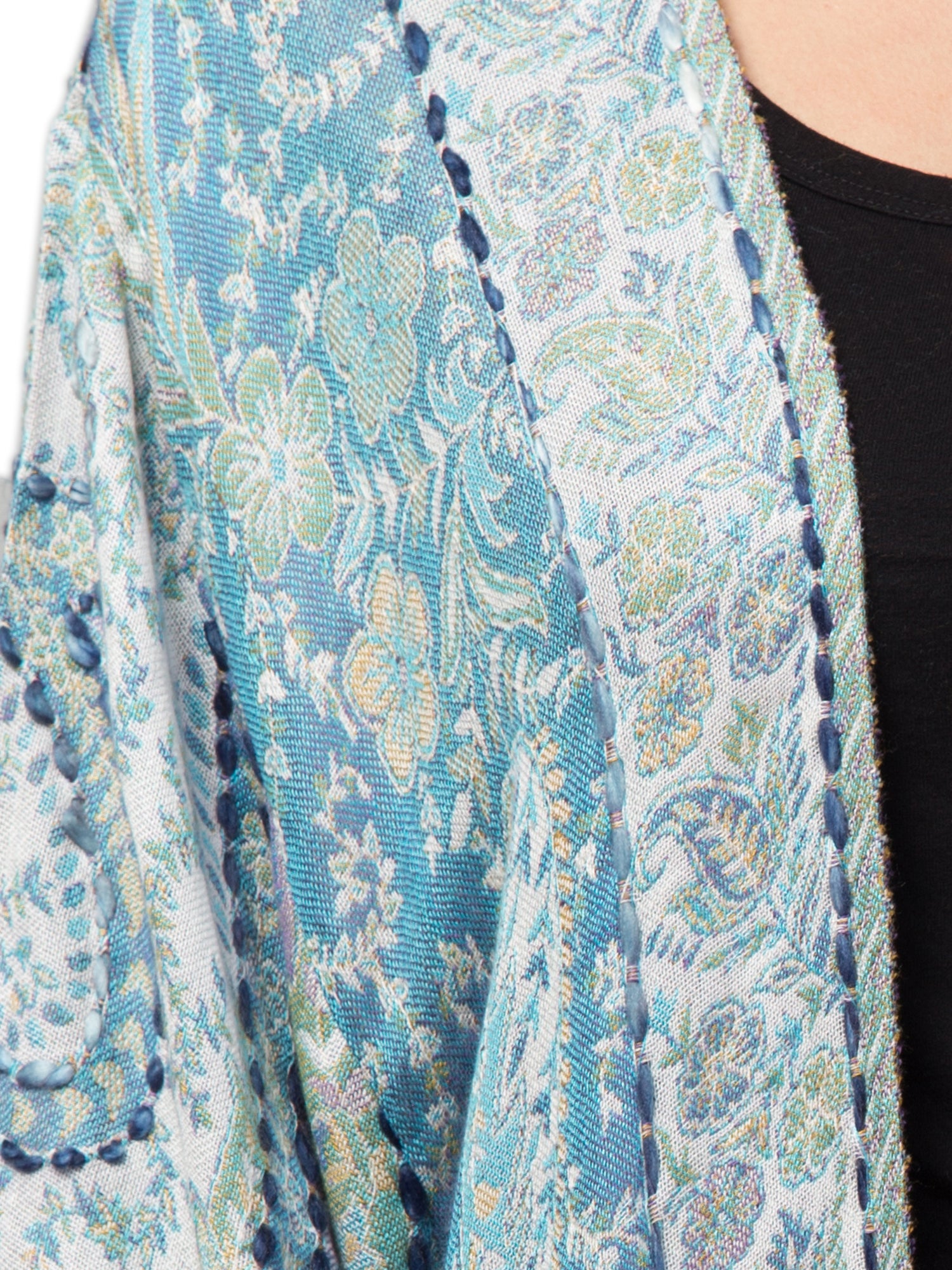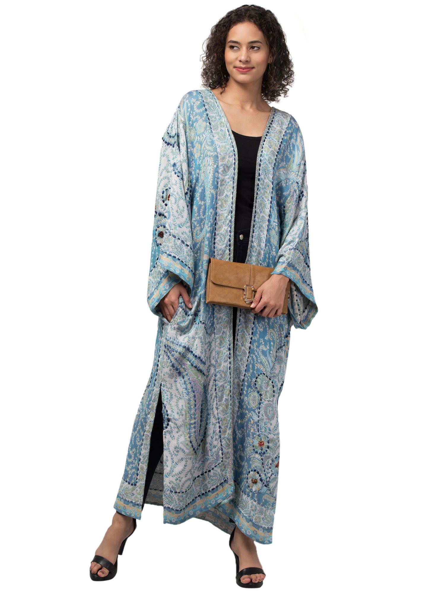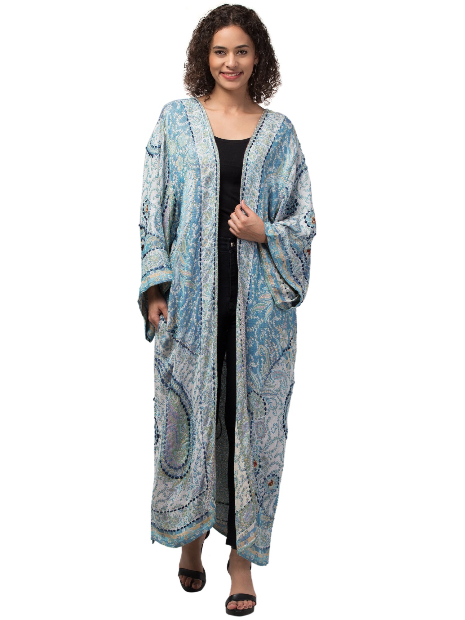 In summary, the Diana Sapphire Kimono Jacket is a beautiful blend of artistry, style, and sustainability. With its handcrafted quality, Bohemian elegance, and durable fabric, it is an essential piece for anyone looking to enhance their wardrobe. Make a statement with this unique jacket and embrace the beauty of artisanal craftsmanship.