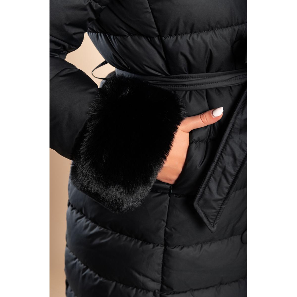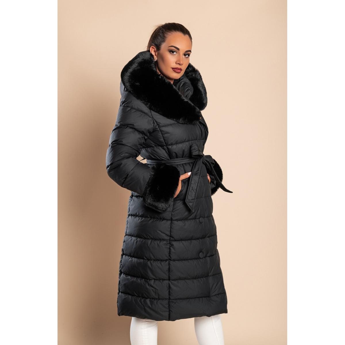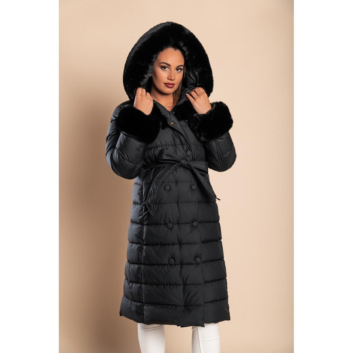 Dolga prešita bunda z umetnim krznom v črni barvi je idealna izbira za hladne zimske dni. Ta elegantna bunda je zasnovana tako, da nudi maksimalno udobje in toploto, kar jo naredi popolno za vsakodnevno nošenje. Kvalitetni materiali zagotavljajo dolgotrajno uporabo in prijetno nošenje, kar je ključno za zimsko oblačilo.