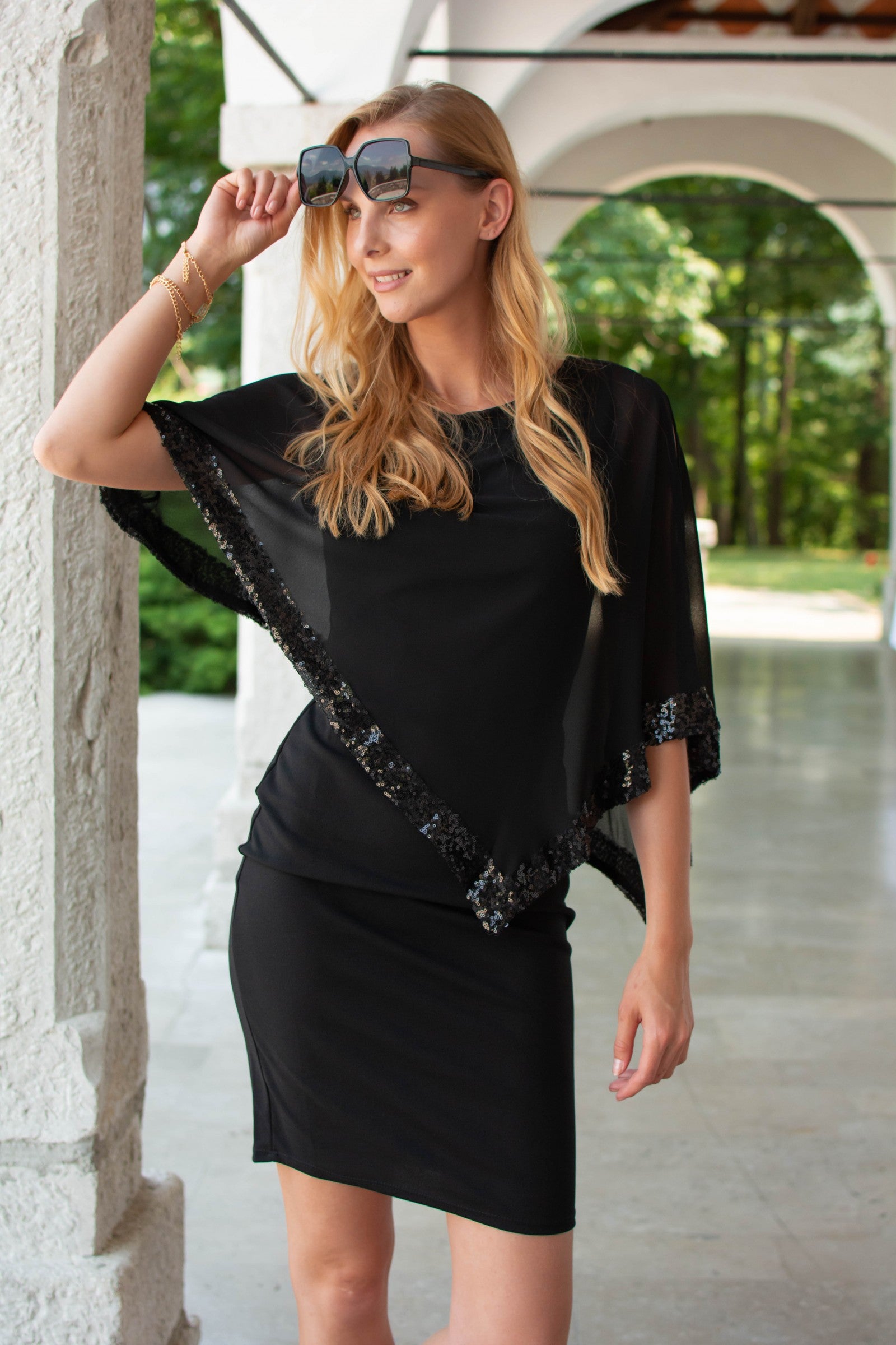 The DRESS ARLET - BLACK is adorned with translucent fabric that features decorative glitter, adding a touch of sparkle to your look. This eye-catching detail is perfect for those who want to shine at their next event. The glitter catches the light beautifully, making you the center of attention.