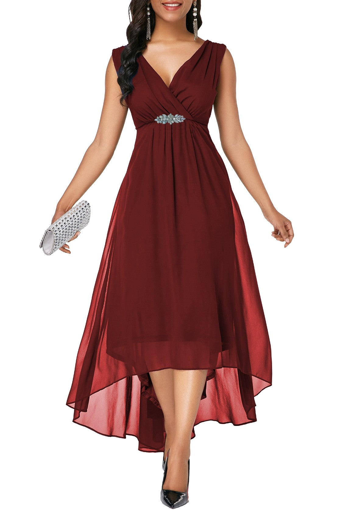 This dress boasts a beautiful cleavage design that adds a touch of allure to your outfit. The elastic breast feature provides a flattering fit, allowing you to move with ease while maintaining a sophisticated appearance. The front crystal decor adds a hint of sparkle, making this dress perfect for evening events where you want to shine.