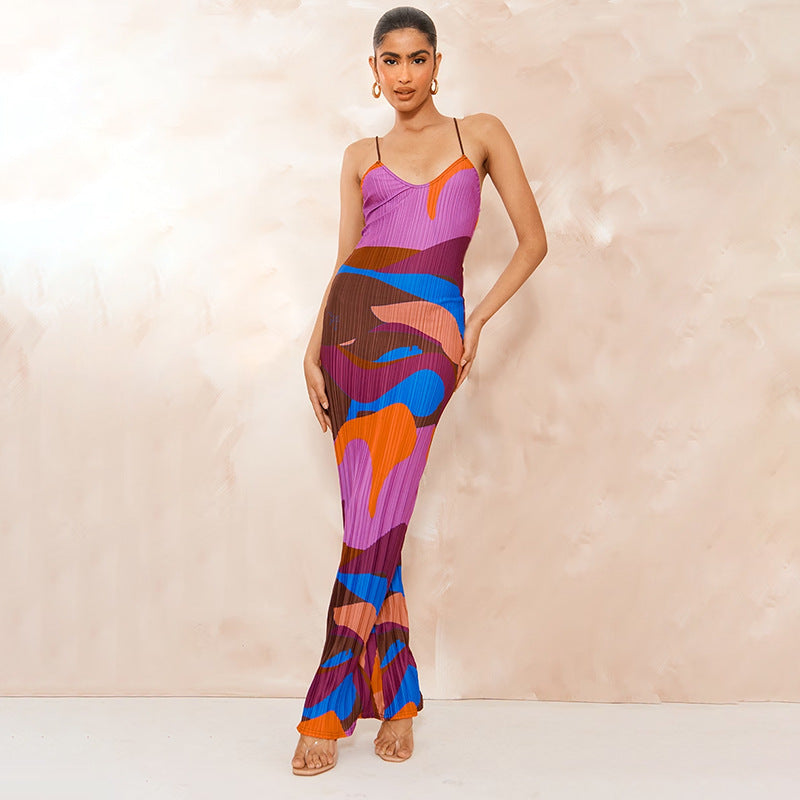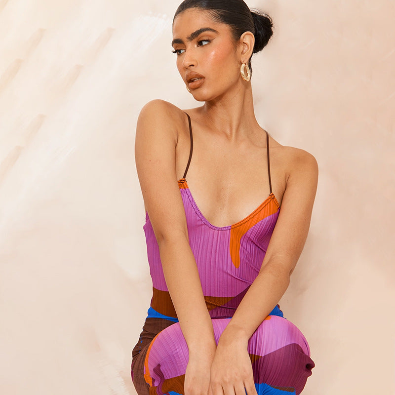 The Dress Slim Women Dress Sexy features a trendy color block and tie-dye pattern that adds a modern twist to a classic silhouette. The combination of colors is eye-catching and perfect for making a statement wherever you go. Whether you're heading to a brunch with friends or a night out, this dress will ensure you stand out in the crowd.