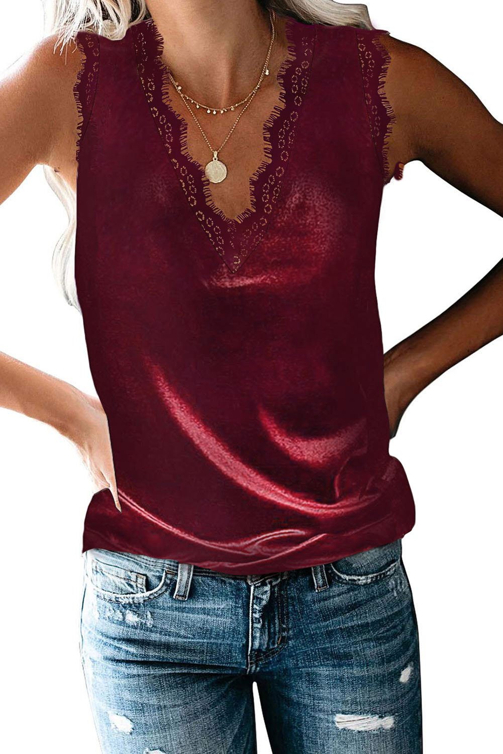 The standout feature of this tank top is its delicate eyelash lace v neck. This feminine detail adds a touch of sexiness and sophistication, making it suitable for both important occasions and everyday wear. Whether you're heading to a brunch with friends or a formal event, this tank top will elevate your outfit and make you feel confident.