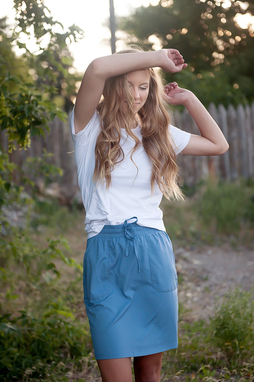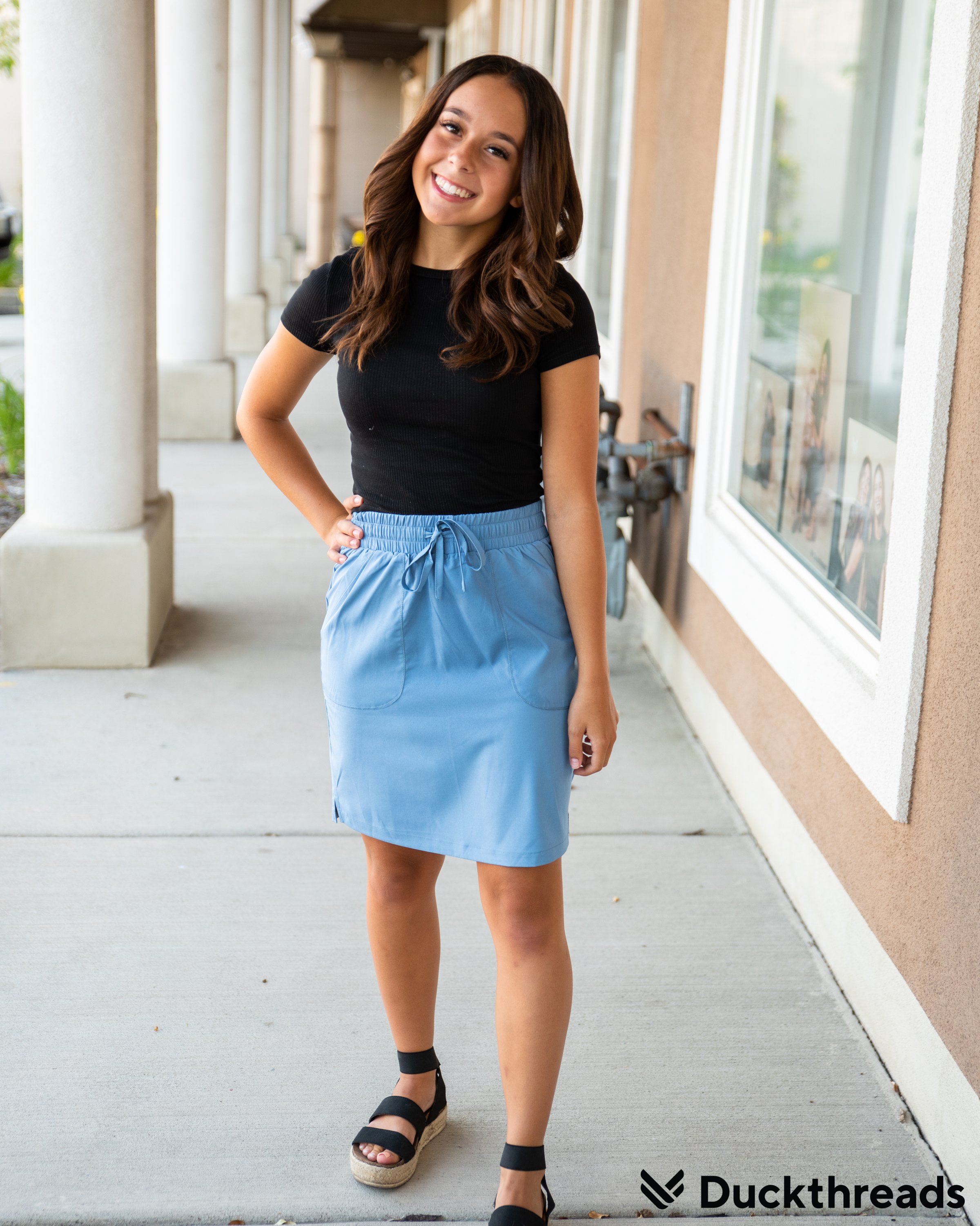 The DT BREEZE Sporty Skirt in Sky Blue is incredibly versatile. Pair it with a classic black or white tee for a timeless look, or opt for your favorite graphic tee to add a touch of personality to your outfit. You can easily transition from day to night by swapping out your top and accessories. Add a denim jacket for a casual vibe or dress it up with a statement necklace and heels for a night out.