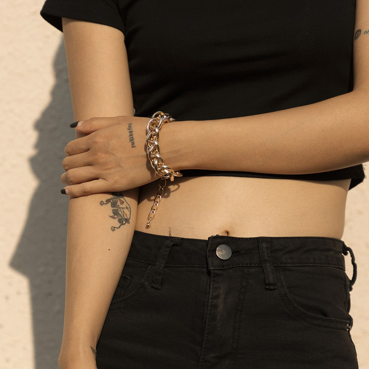 This elegant bracelet features a chain link design that is both timeless and trendy. The interlocking links create a fluid movement that catches the light beautifully, making it a standout accessory. Its gold hue radiates warmth and luxury, ensuring that you will turn heads wherever you go.