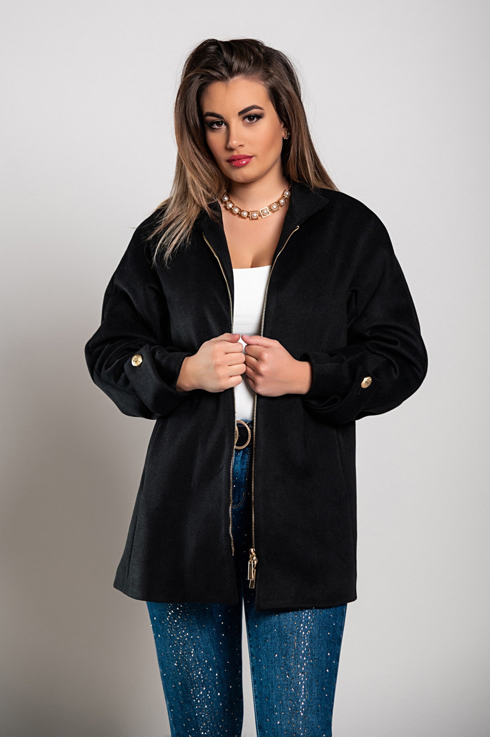 The Elegant Coat Albineya in black is a stunning addition to any wardrobe, designed to provide both style and comfort. Made from high-quality, soft fabric, this coat ensures that you feel cozy while looking chic. Its classic collar and zip fastening at the front add a touch of sophistication, making it suitable for both everyday wear and more formal occasions.
