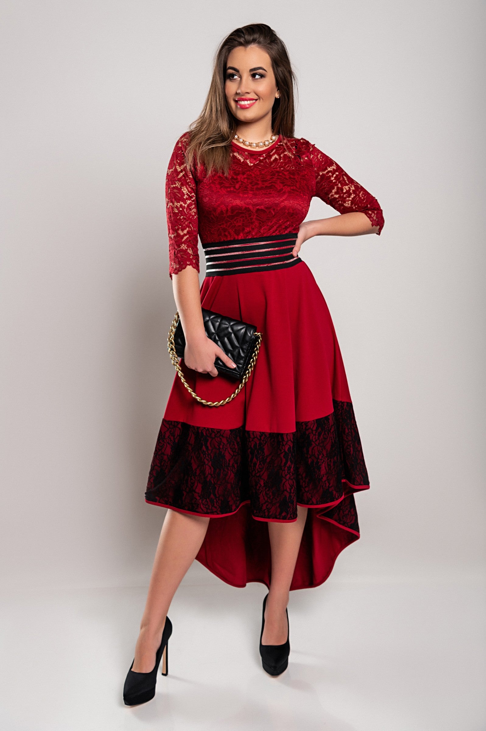 The Elegant Dress with Lace Bianca in burgundy is the epitome of sophistication and style. This fashionable asymmetrical dress is designed to enhance your sophisticated look, making it an ideal choice for various occasions, from formal events to upscale gatherings. The rich burgundy color adds a touch of luxury, while the intricate lace detailing elevates the overall aesthetic, ensuring you stand out in any crowd.